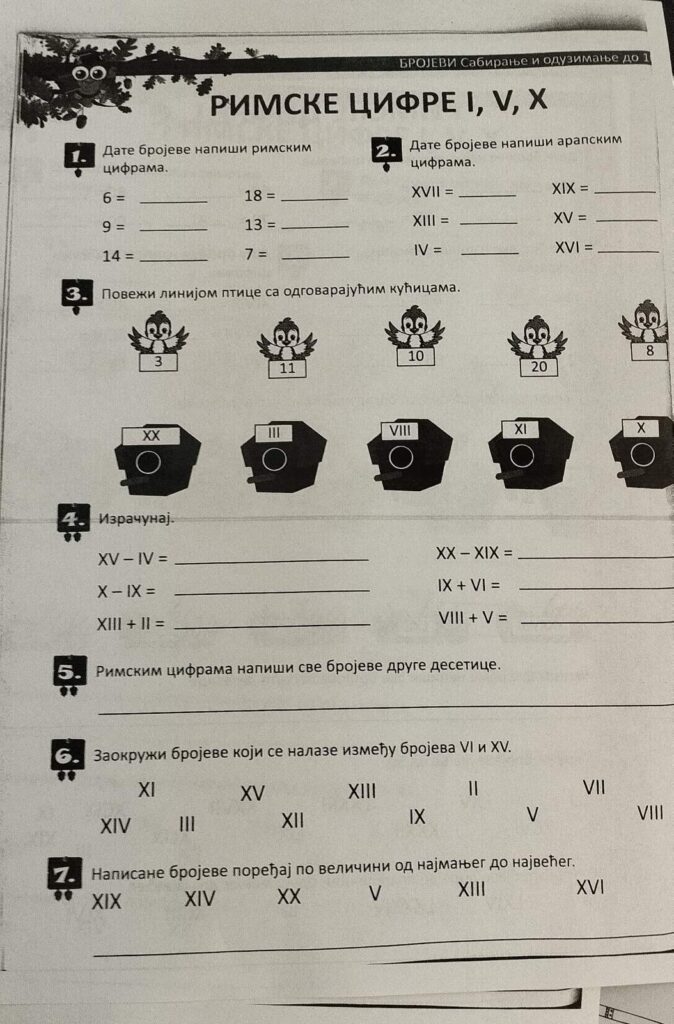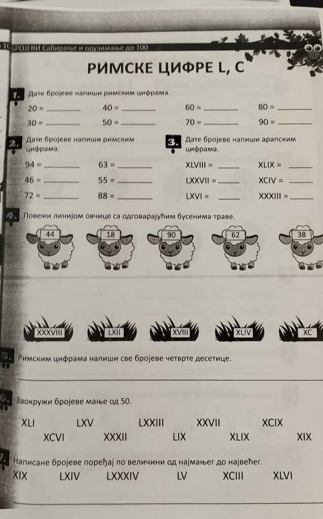 Писање бројева римским цифрама, припрема за писмену вежбу.