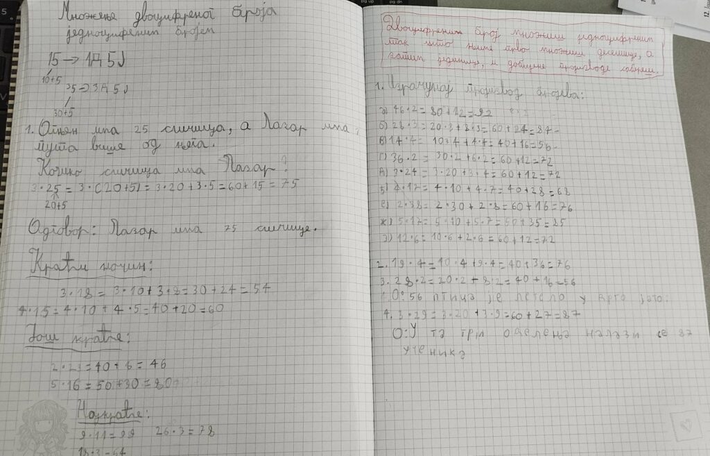 Множење двоцифреног броја једноцифреним бројем, рад на задацима у свесци.
