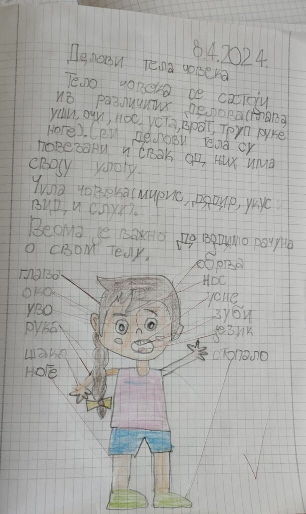 Делови тела човека. Рад на задацима у радној свесци.